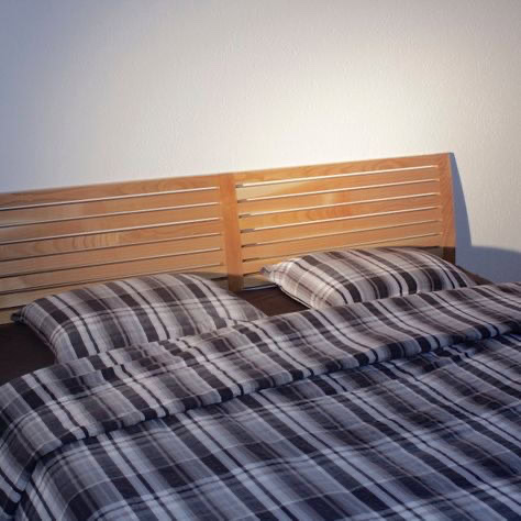 Ensemble de lit et meuble de chevet avec bibliothèque en bois de cerisier massif
