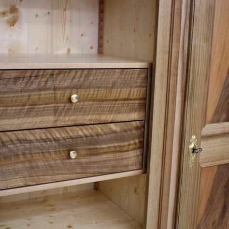 Armoire en noyer avec cabinet intérieur à deux tiroirs, exécuté comme examen de fin d’apprentissage