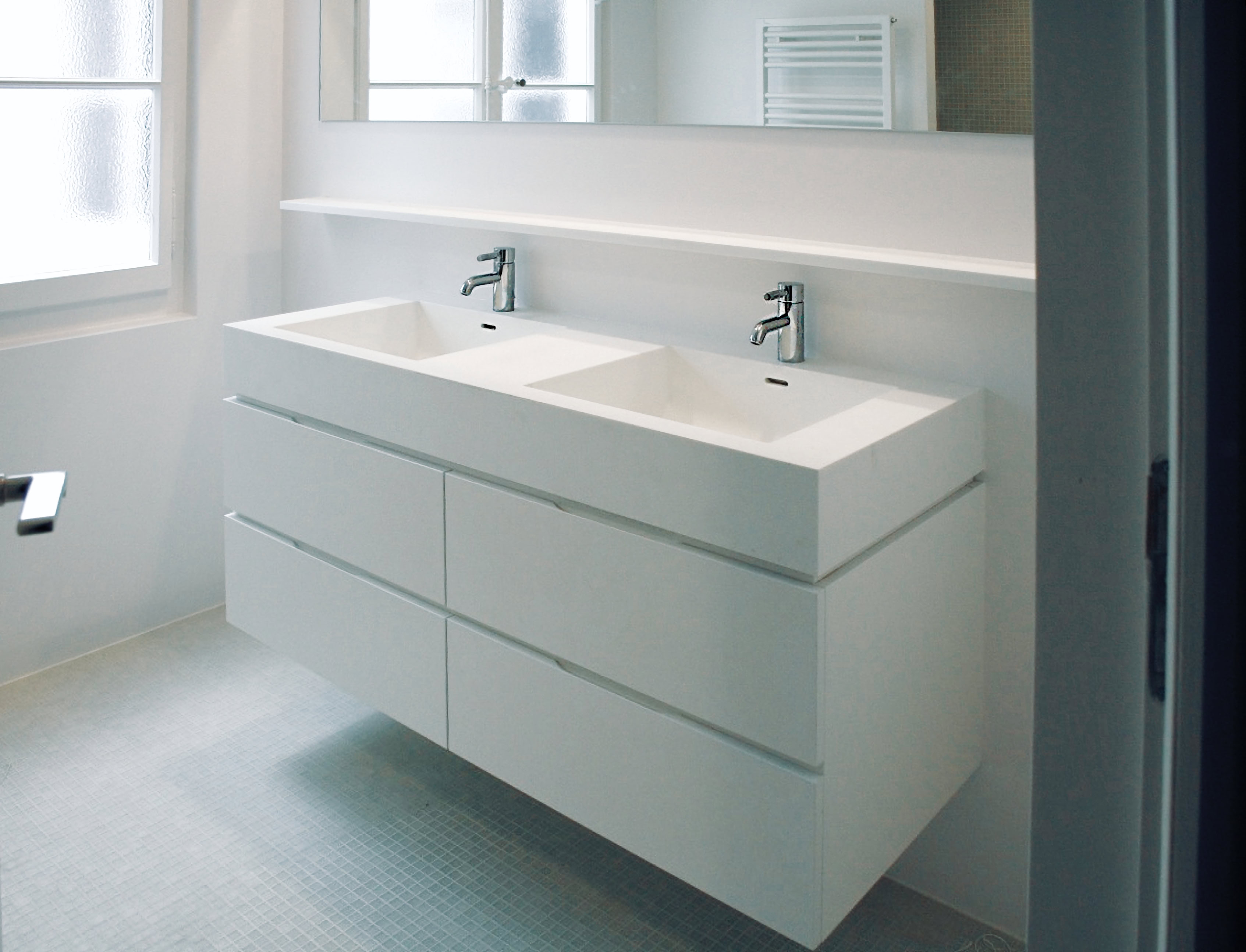 Divers meubles de salle de bain réalisés sur mesure avec des matériaux de haut de gamme